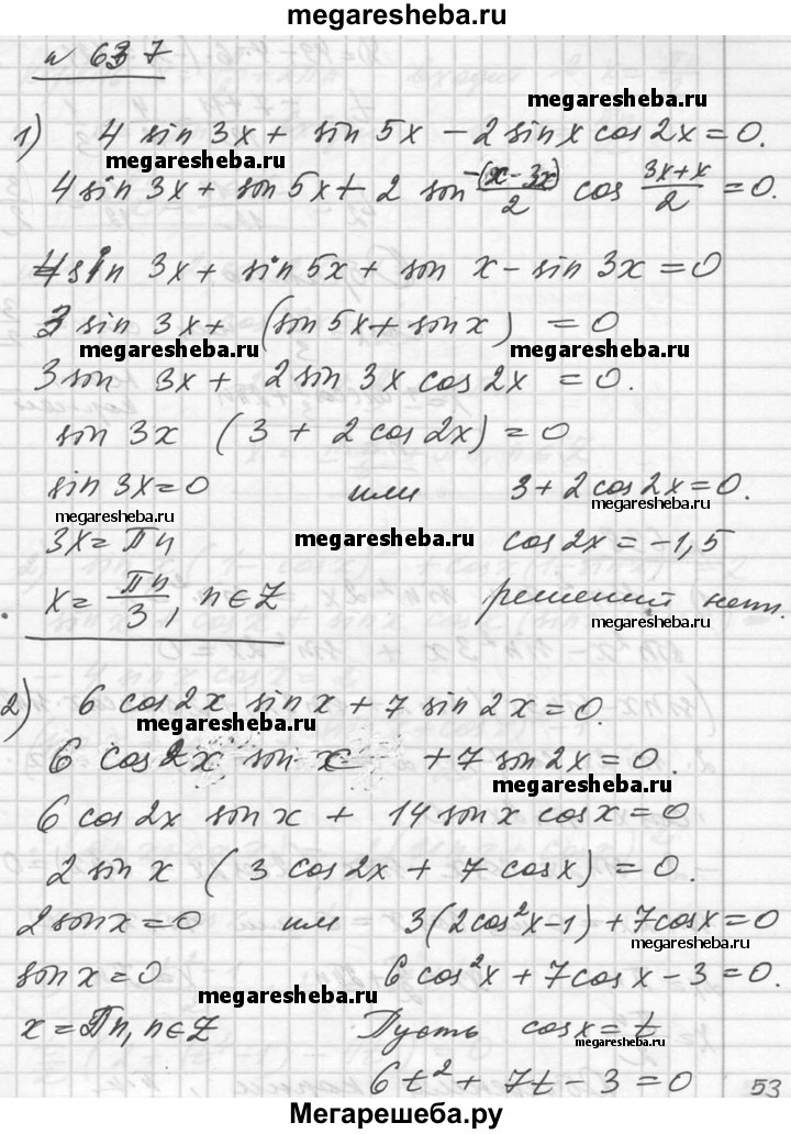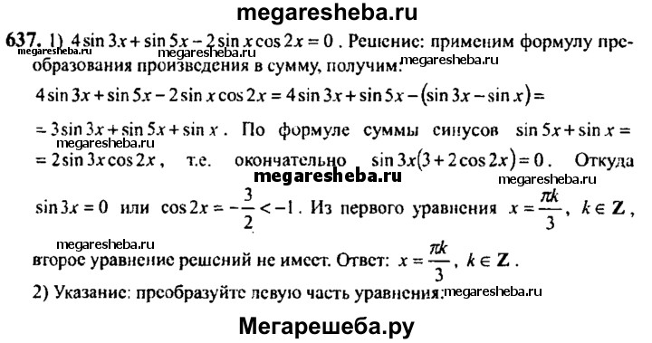 Подробный решебник (ГДЗ) по Алгебре за 10‐11 (десятый‐одиннадцатый) класс - готовый ответ упражнение - 637. Авторы учебника: Алимов, Колягин, Ткачева, Базовый и углубленный уровень. Издательство: Просвещение 2015-2024.