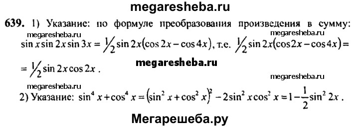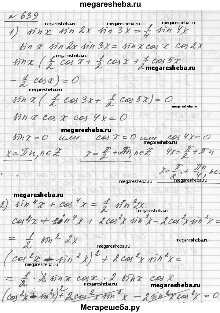 Подробный решебник (ГДЗ) по Алгебре за 10‐11 (десятый‐одиннадцатый) класс - готовый ответ упражнение - 639. Авторы учебника: Алимов, Колягин, Ткачева, Базовый и углубленный уровень. Издательство: Просвещение 2015-2024.