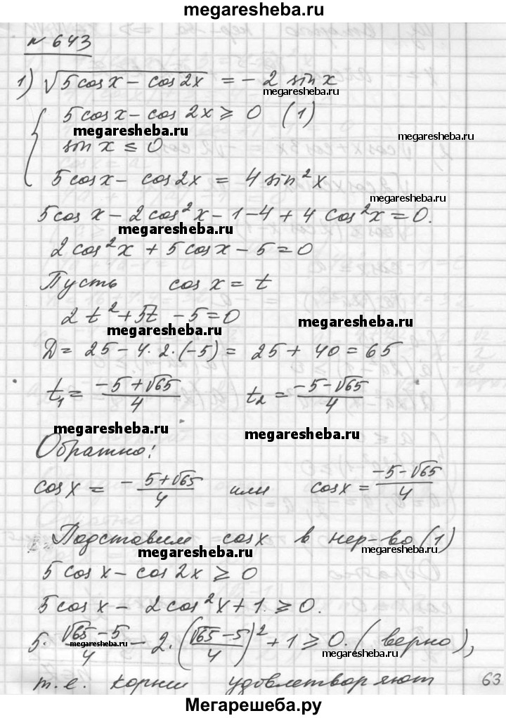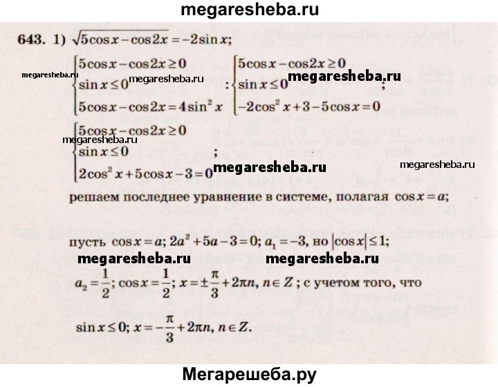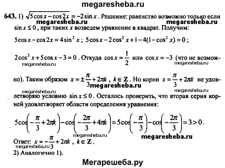 Подробный решебник (ГДЗ) по Алгебре за 10‐11 (десятый‐одиннадцатый) класс - готовый ответ упражнение - 643. Авторы учебника: Алимов, Колягин, Ткачева, Базовый и углубленный уровень. Издательство: Просвещение 2015-2024.