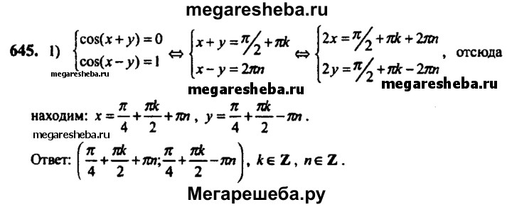 Подробный решебник (ГДЗ) по Алгебре за 10‐11 (десятый‐одиннадцатый) класс - готовый ответ упражнение - 645. Авторы учебника: Алимов, Колягин, Ткачева, Базовый и углубленный уровень. Издательство: Просвещение 2015-2024.