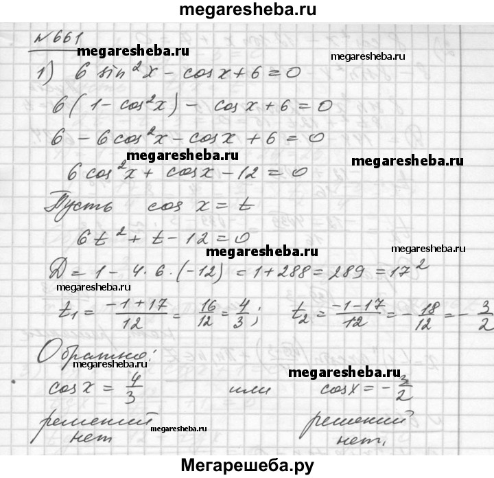 Подробный решебник (ГДЗ) по Алгебре за 10‐11 (десятый‐одиннадцатый) класс - готовый ответ упражнение - 661. Авторы учебника: Алимов, Колягин, Ткачева, Базовый и углубленный уровень. Издательство: Просвещение 2015-2024.