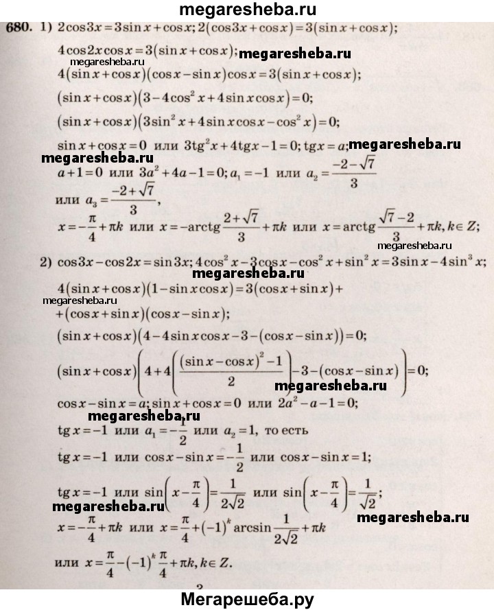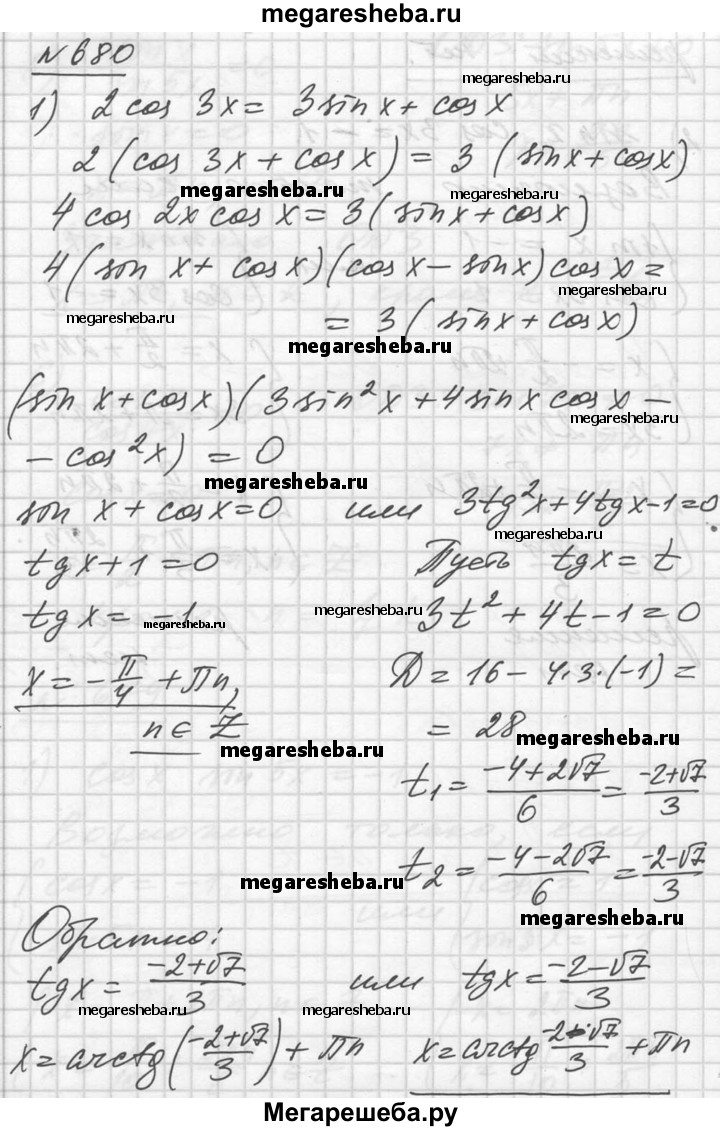 Подробный решебник (ГДЗ) по Алгебре за 10‐11 (десятый‐одиннадцатый) класс - готовый ответ упражнение - 680. Авторы учебника: Алимов, Колягин, Ткачева, Базовый и углубленный уровень. Издательство: Просвещение 2015-2024.