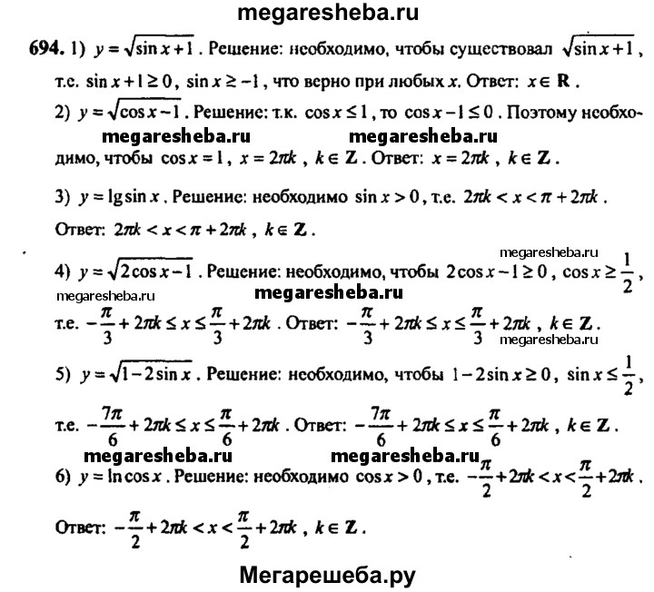 Подробный решебник (ГДЗ) по Алгебре за 10‐11 (десятый‐одиннадцатый) класс - готовый ответ упражнение - 694. Авторы учебника: Алимов, Колягин, Ткачева, Базовый и углубленный уровень. Издательство: Просвещение 2015-2024.