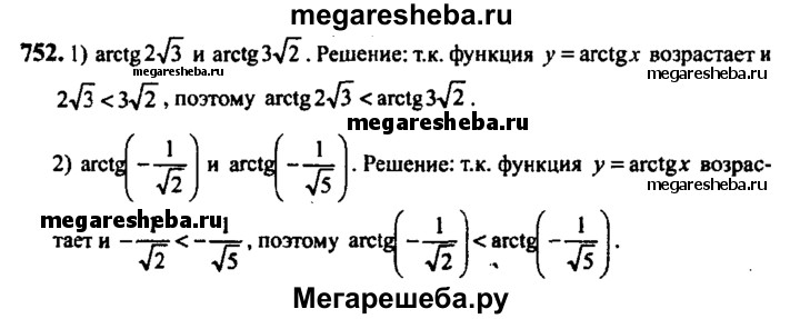 Подробный решебник (ГДЗ) по Алгебре за 10‐11 (десятый‐одиннадцатый) класс - готовый ответ упражнение - 752. Авторы учебника: Алимов, Колягин, Ткачева, Базовый и углубленный уровень. Издательство: Просвещение 2015-2024.