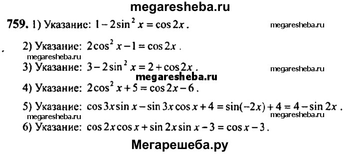 Подробный решебник (ГДЗ) по Алгебре за 10‐11 (десятый‐одиннадцатый) класс - готовый ответ упражнение - 759. Авторы учебника: Алимов, Колягин, Ткачева, Базовый и углубленный уровень. Издательство: Просвещение 2015-2024.