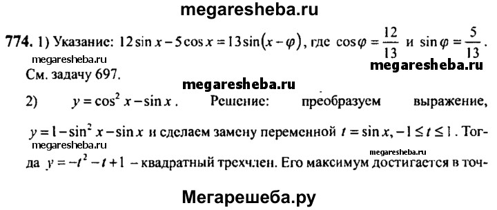 Подробный решебник (ГДЗ) по Алгебре за 10‐11 (десятый‐одиннадцатый) класс - готовый ответ упражнение - 774. Авторы учебника: Алимов, Колягин, Ткачева, Базовый и углубленный уровень. Издательство: Просвещение 2015-2024.