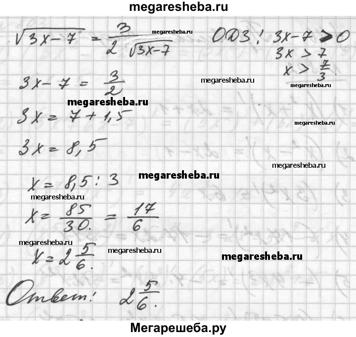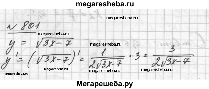 801. Найти значения х, при которых значения функции у = √Зх - 7 равны значениям функции, являющейся её производной.