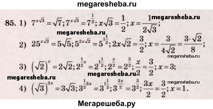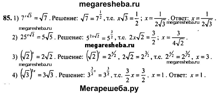 Подробный решебник (ГДЗ) по Алгебре за 10‐11 (десятый‐одиннадцатый) класс - готовый ответ упражнение - 85. Авторы учебника: Алимов, Колягин, Ткачева, Базовый и углубленный уровень. Издательство: Просвещение 2015-2024.