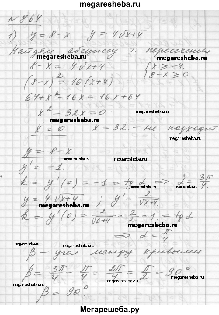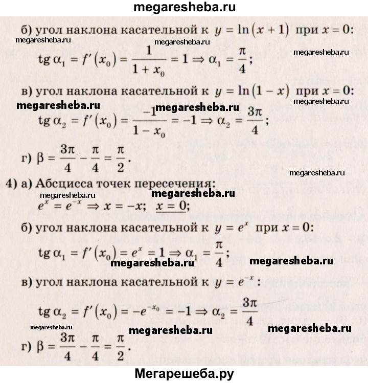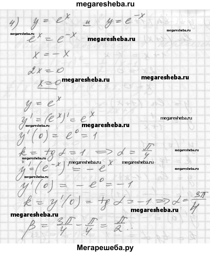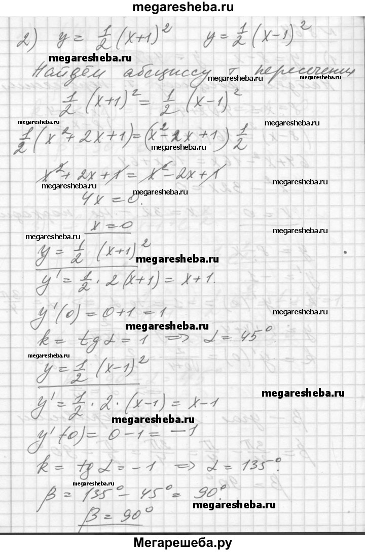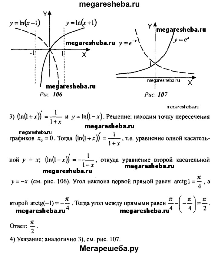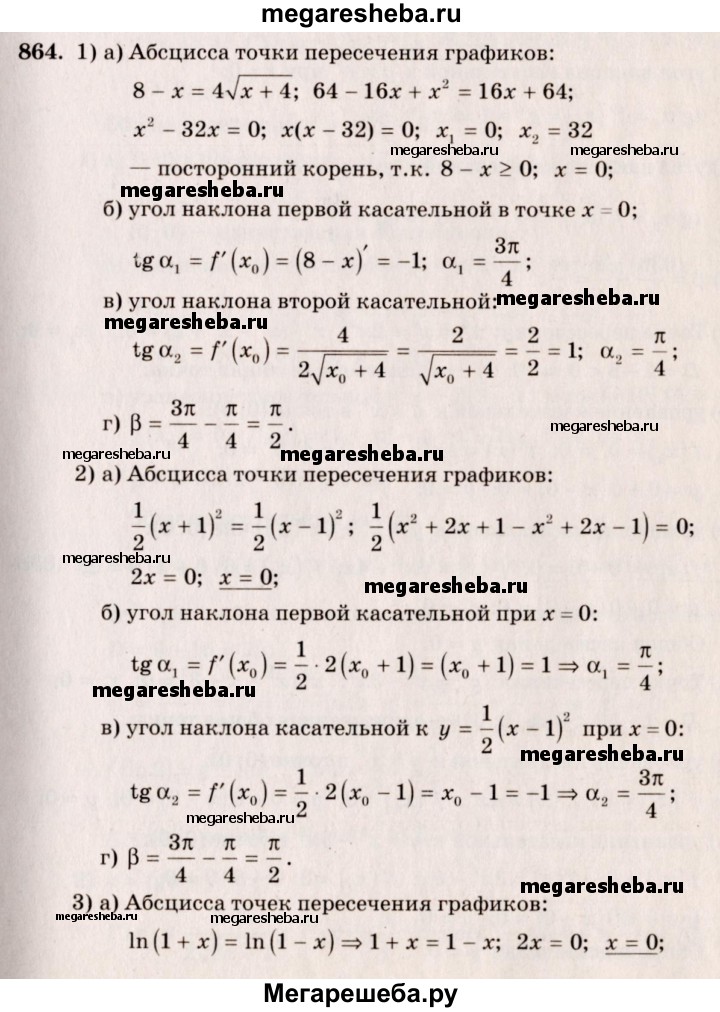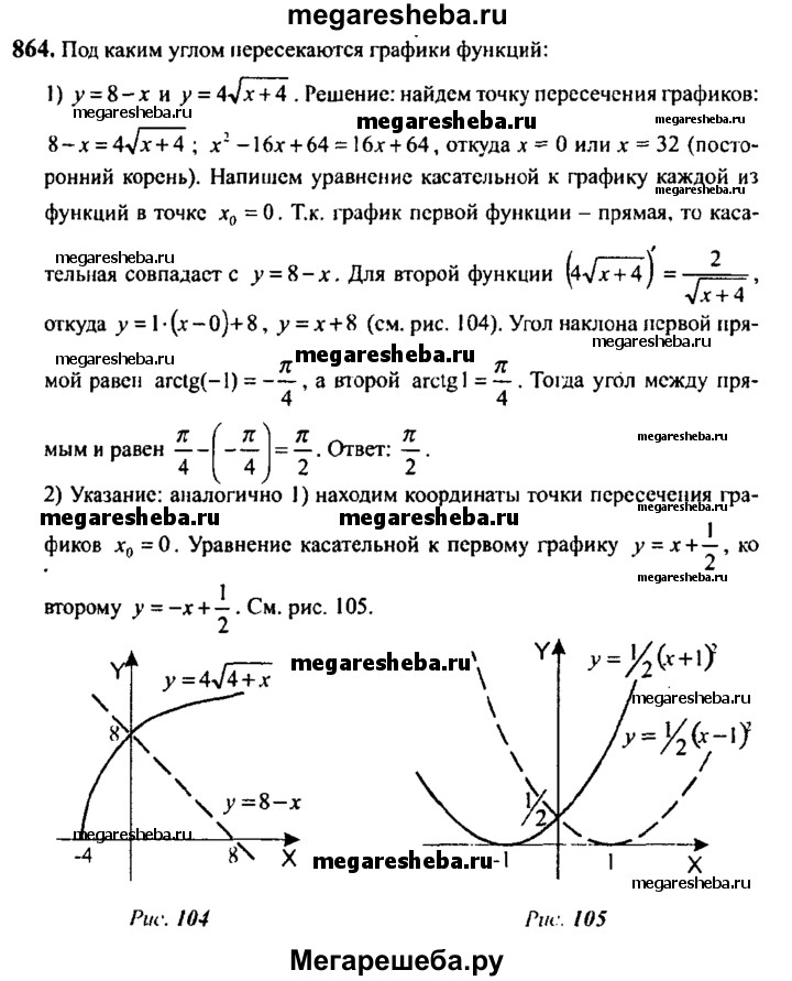 864. Под каким углом пересекаются графики функций (углом между кривыми в точке их пересечения называют угол меж¬ду касательными к этим кривым в этой точке):