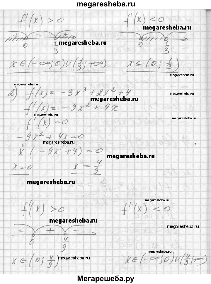 875. Найти значения x, при которых значение производной функ¬ции f (х) равно нулю; положительно; отрицательно: