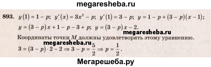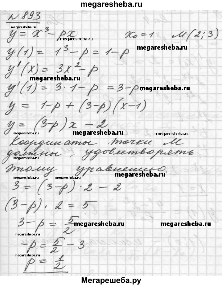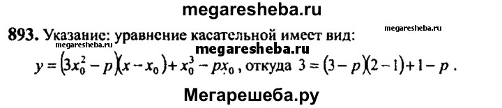 893. Выяснить, при каких значениях р касательная, проведённая к графику функции у = х^3 - рх в его точке с абсциссой х0 = 1, проходит через точку М (2; 3).