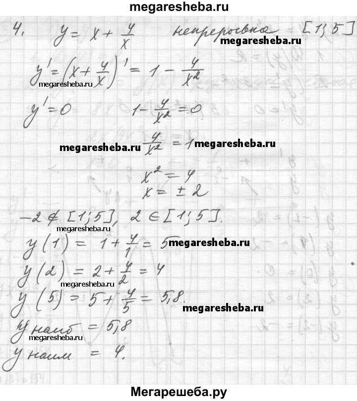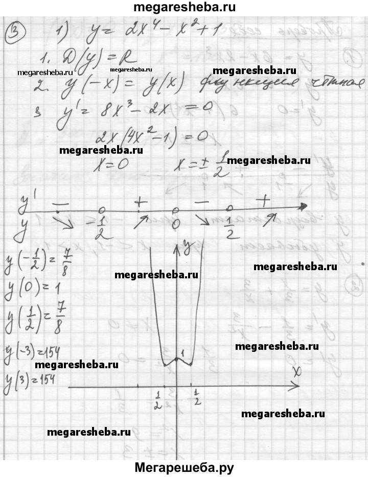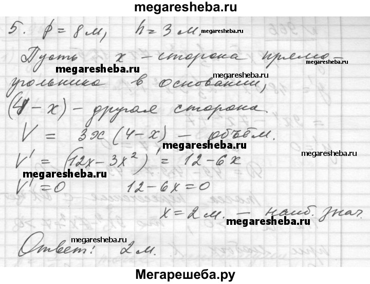 1. Найти интервалы возрастания и убывания функции у = 6х- 2х^3. 2. Найти точки экстремума функции у = x/3 +3/x. 3. Построить график функции: 1) у = 2х^4 – х^2 + 1; 2) у = х^3 - Зх. 4. Функция у = х + 4/x непрерывна на отрезке [1; 5]. Найти её наибольшее и наименьшее значения. 5. Периметр основания прямоугольного параллелепипеда 8 м, а высота 3 м. Какой длины должны быть стороны основа¬ния, чтобы объём параллелепипеда был наибольшим?