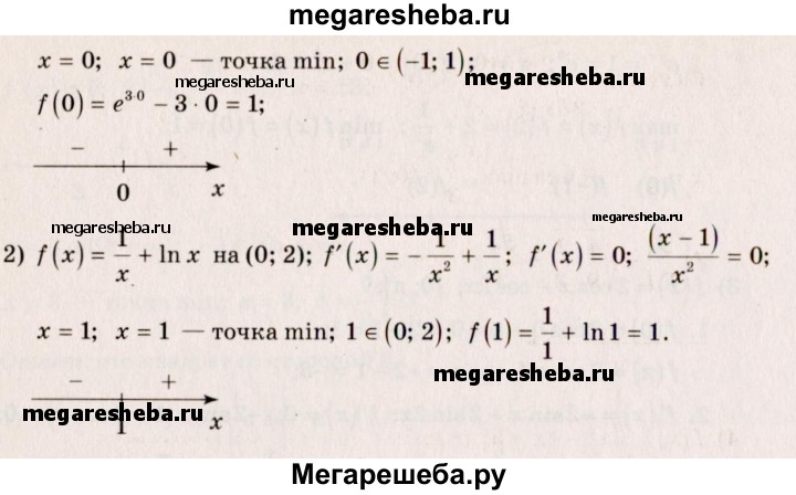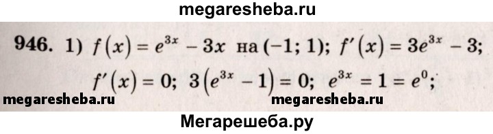 946. Найти наименьшее значение функции: 1) е^3х - Зх на интервале (-1; 1); 2) 1/x + In х на интервале (0; 2).