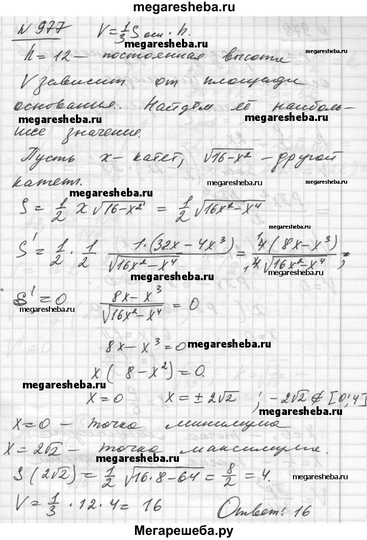 Подробный решебник (ГДЗ) по Алгебре за 10‐11 (десятый‐одиннадцатый) класс - готовый ответ упражнение - 977. Авторы учебника: Алимов, Колягин, Ткачева, Базовый и углубленный уровень. Издательство: Просвещение 2015-2024.