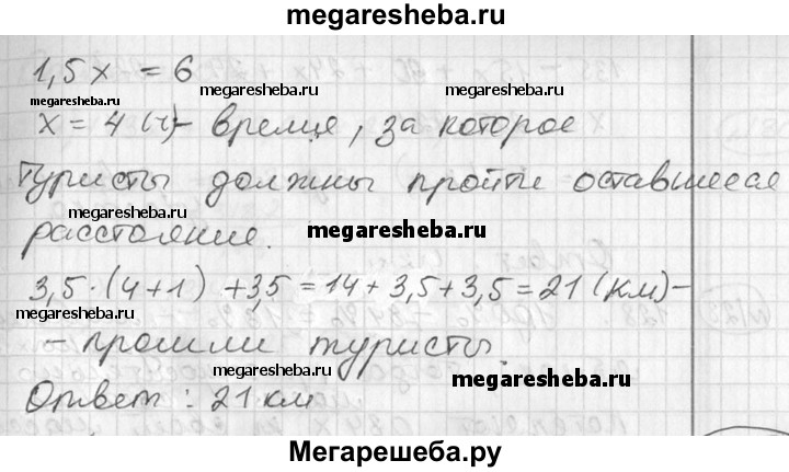 126 Первый час туристы шли на станцию со скоростью 3,5 км/ч. После этого они рассчитали, что если и дальше будут идти с той же скоростью, то придут на час позже намеченного срока. Увеличив скорость на 1,5 км/ч, туристы прибыли на станцию на 30 мин раньше намеченного срока. Какой путь прошли туристы?