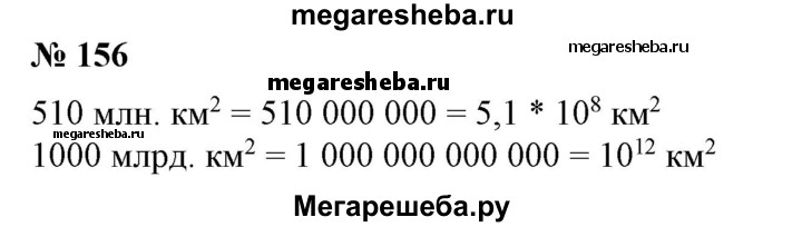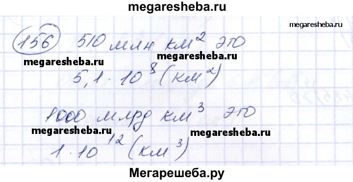156 Поверхность земного шара составляет более 510 млн км2, объем Земли свыше 1000 млрд км3. Записать данные числа в стандартном виде.