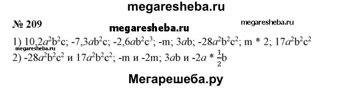 209 Среди одночленов указать одночлены: 1) стандартного вида; 2) отличающиеся только коэффициентами.