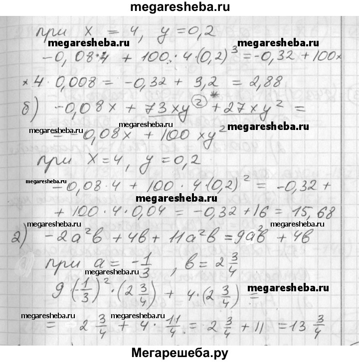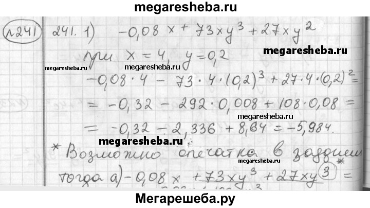 241 Найти значение многочлена: 1) -0,08x + 73ху3 +27xy2 при x = 4 и у = 0,2; 2) -2a2b + 4b + 11a2b при а = -1/3 и b = 2 3/4.