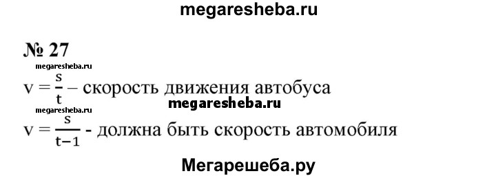 27. Автобус преодолевает путь s километров за t часов. С какой скоростью должен ехать автомобиль, чтобы тот же путь преодолеть на 1 ч быстрее автобуса?