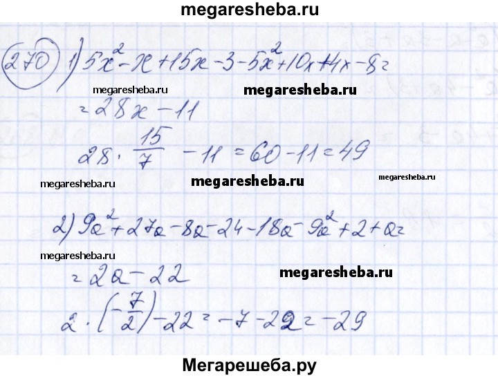 Подробный решебник (ГДЗ) по Алгебре за 7 (седьмой) класс - готовый ответ номер - 270. Авторы учебника: Алимов, Колягин, Сидоров. Издательство: Просвещение 2015.