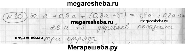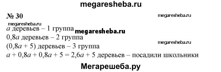 30. Три отряда сажали деревья. Первый отряд посадил а деревьев, второй — 80% того, что посадил первый, а третий — на 5 деревьев больше второго. Сколько деревьев посадили три отряда?