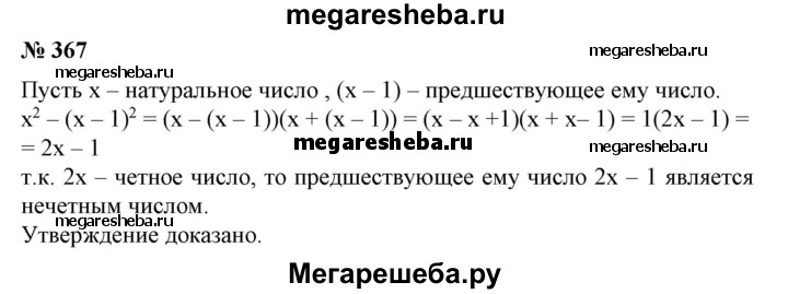 367. Доказать, что модуль разности квадратов двух последовательных натуральных чисел есть нечетное число.