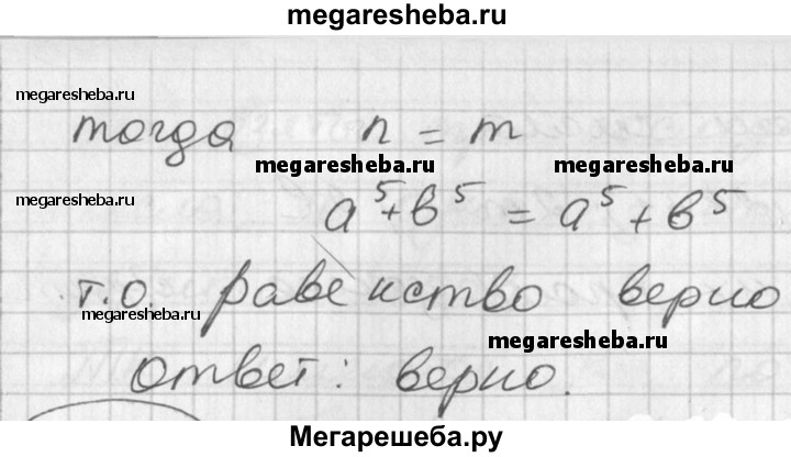 426. Верно ли равенство 2b5 +(a4 +a3b + a2b2 +ab3 +b4)(a-b) = (a4 -a3b + a2b2 -ab3 +b4)(a + b)? Задача 1 Скорость катера в стоячей воде равна а километрам в час, скорость течения реки равна b километрам в час. Во сколько раз скорость движения катера по течению реки больше скорости движения катера против течения? Задача 2 Сократить дробь: 1) 12а2b/4ab2; 2) m2-n2/m2+mn. Задача 3 Упростить дробь 3a(y-x)/a2(x-y)