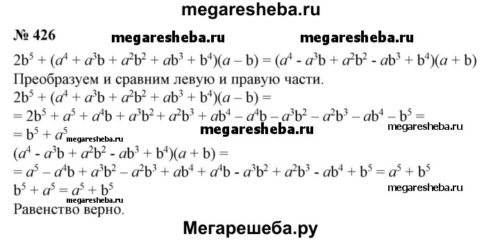 Подробный решебник (ГДЗ) по Алгебре за 7 (седьмой) класс - готовый ответ номер - 426. Авторы учебника: Алимов, Колягин, Сидоров. Издательство: Просвещение 2015.