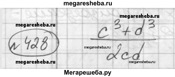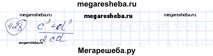 428. Записать алгебраическую дробь, числитель которой равен сумме кубов чисел с и d, а знаменатель — удвоенному произведению этих чисел.