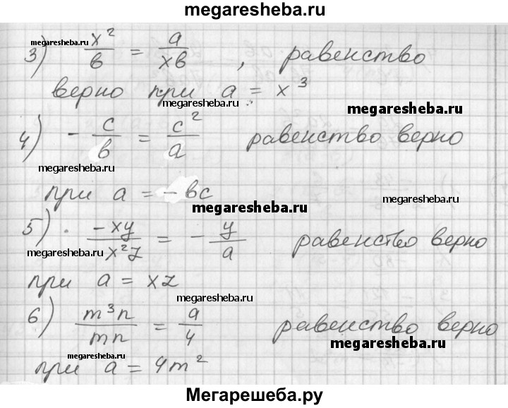 432. Используя основное свойство дроби, заменить букву а алгебраическим или числовым выражением так, чтобы равенство было верным.