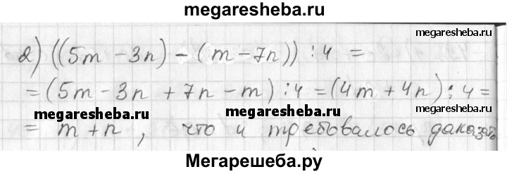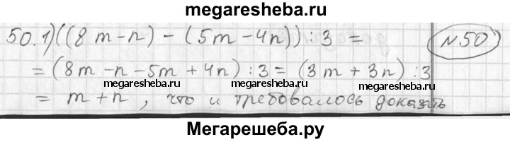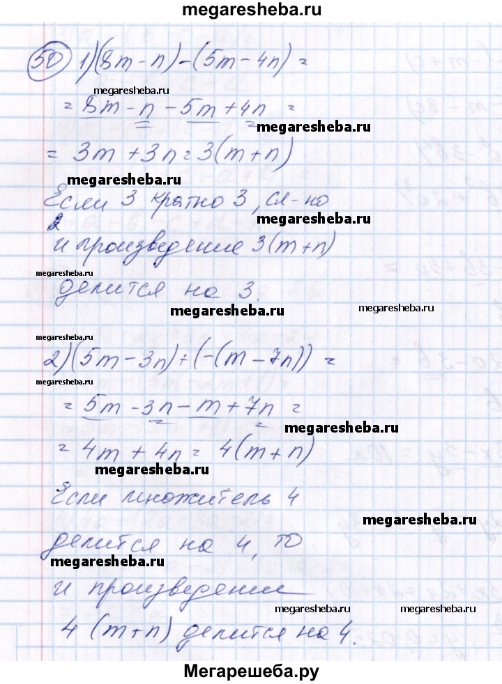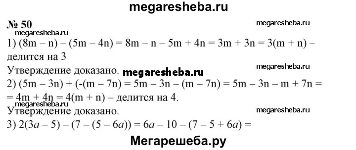 50. Пусть m и n — натуральные числа. Доказать, что: 1) разность чисел 8m-n и 5m-4n делится на 3; 2) сумма числа 5m-Зn и числа, противоположного числу m-7n, делится на 4.