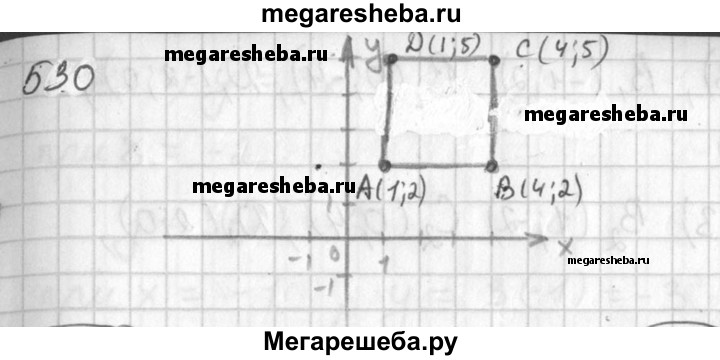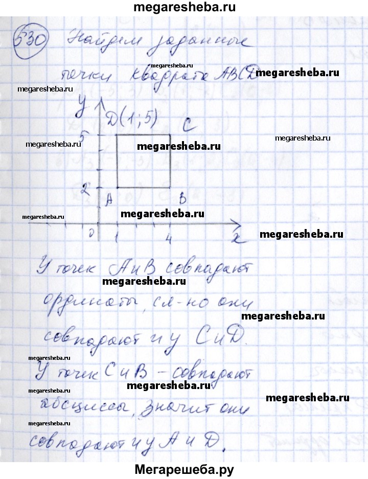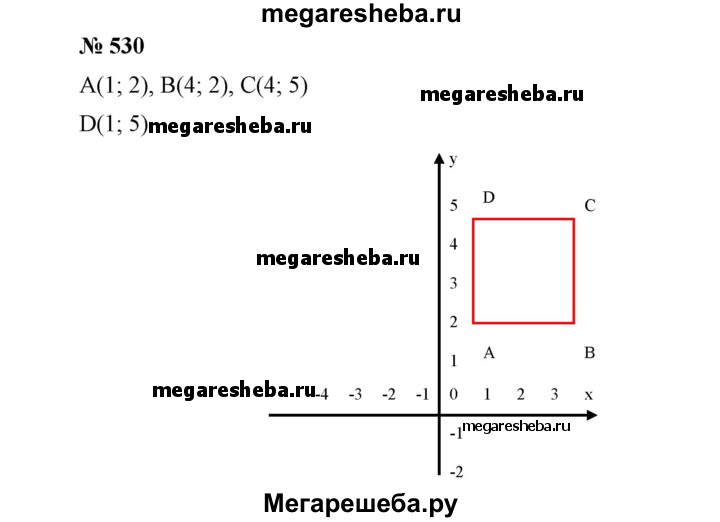 530 Даны три вершины А (1; 2), В (4; 2), С (4; 5) квадрата ABCD. Найти координаты точки D и построить квадрат.