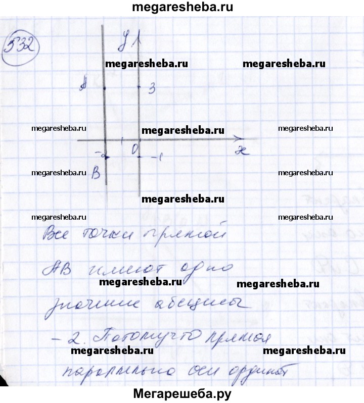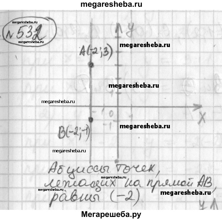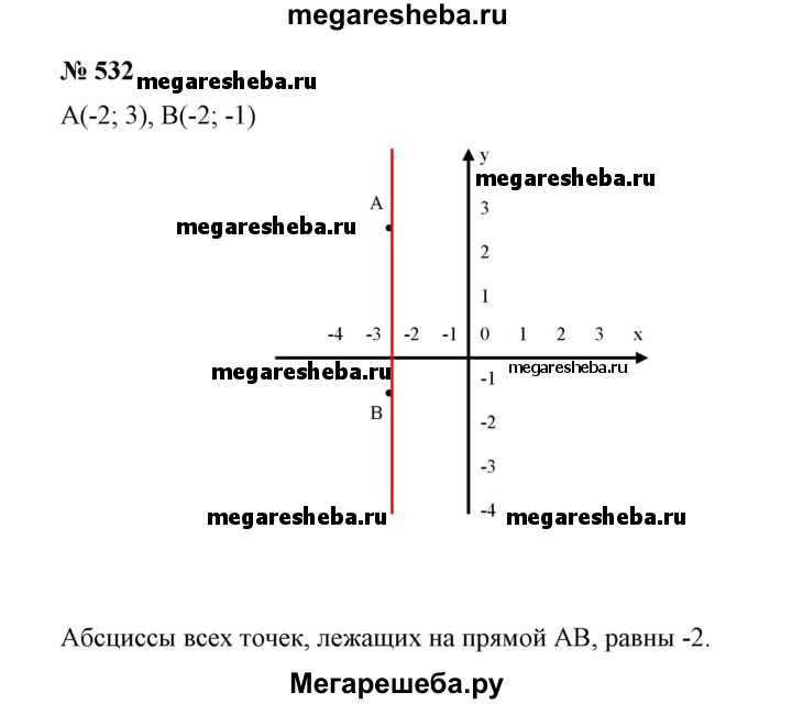 532 Построить прямую, проходящую через точки А (-2; 3) и В (-2; -1). Чему равны абсциссы точек, лежащих на прямой АВ?