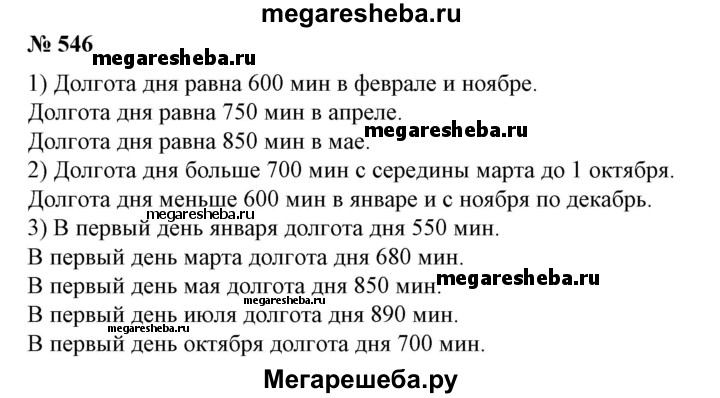 456. На рисунке 13 изображен график зависимости долготы дня от времени года. По оси ординат отложена долгота дня первого числа каждого месяца. По оси абсцисс — номер месяца. 1) В каком месяце долгота дня первого числа равна 600 мин, 750 мин, 850 мин? 2) В какое время года долгота первого дня месяца больше 700 мин, меньше 600 мин? 3) Какова долгота дня в первый день января, марта, мая, июля, октября