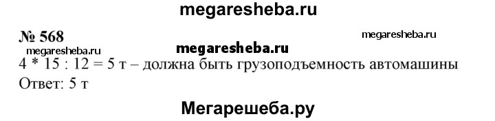 568 Для перевозки некоторого количества зерна автомашина, имеющая грузоподъемность 4 т, сделала 15 рейсов. Какую грузоподъемность должна иметь автомашина, чтобы такое же количество зерна перевезти за 12 рейсов?