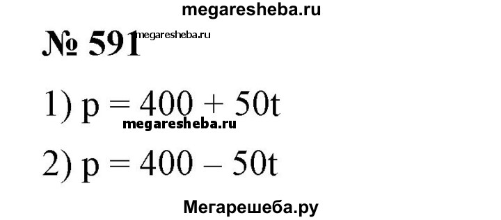 591 1) На складе было 400 т угля. Ежедневно на склад привозили еще по 50 т. Выразить формулой зависимость количества угля р (в тоннах) от времени t (в днях). 2) На складе было 400 т угля. Ежедневно из этого запаса рас-ходовалось по 50 т. Выразить формулой зависимость количества угля р (в тоннах), находящегося на складе, от времени t (в днях).