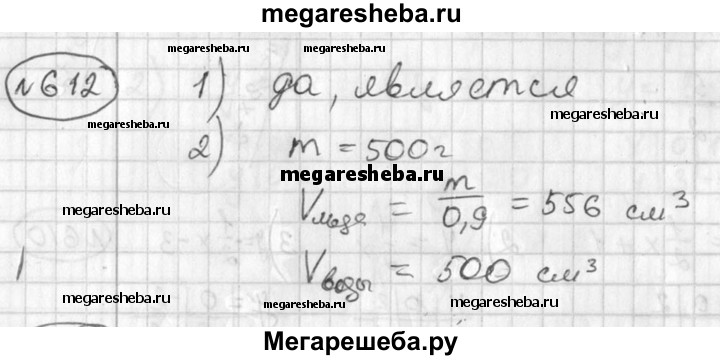 612 Используя графики зависимостей массы m1 воды и массы m2 льда от объема V (рис. 24, а), ответить на вопросы: 1) Является ли функция m1 (V) линейной? 2) Какой объем занимают лед и вода, если они имеют одинаковую массу, равную 500 г?