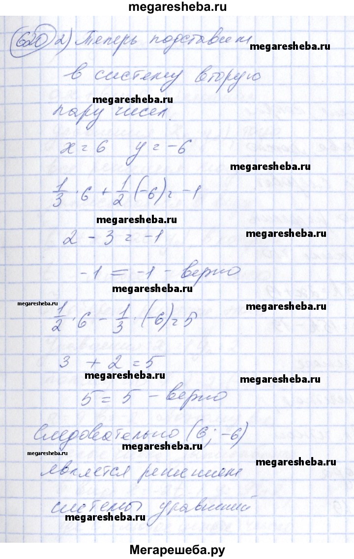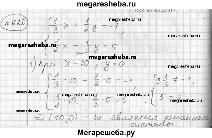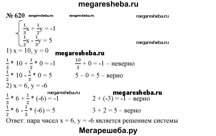 620 Дана система уравнений Из следующих пар чисел найти ту, которая является решением данной системы: 1) х= 10, у = 0; 2) х = 6, y = -6.