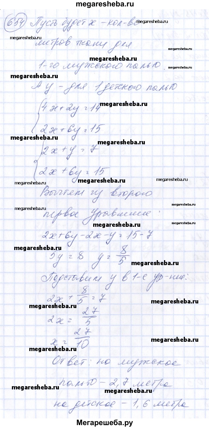 Подробный решебник (ГДЗ) по Алгебре за 7 (седьмой) класс - готовый ответ номер - 654. Авторы учебника: Алимов, Колягин, Сидоров. Издательство: Просвещение 2015.