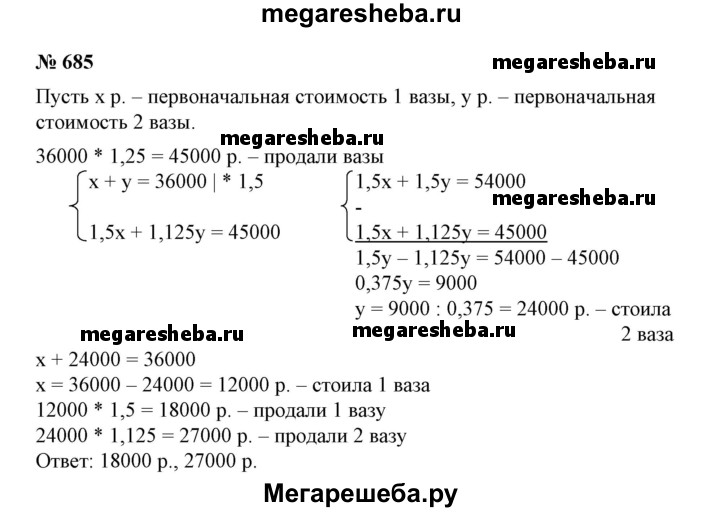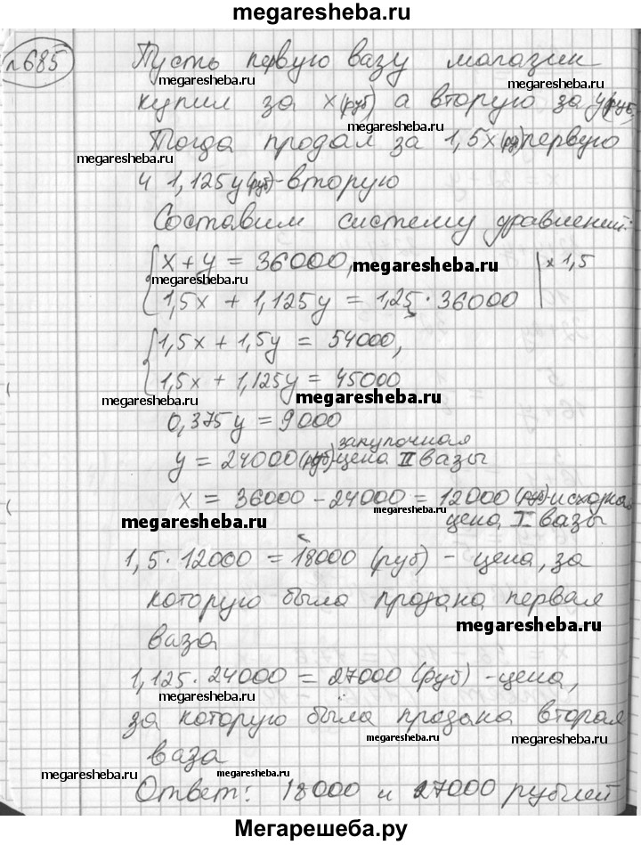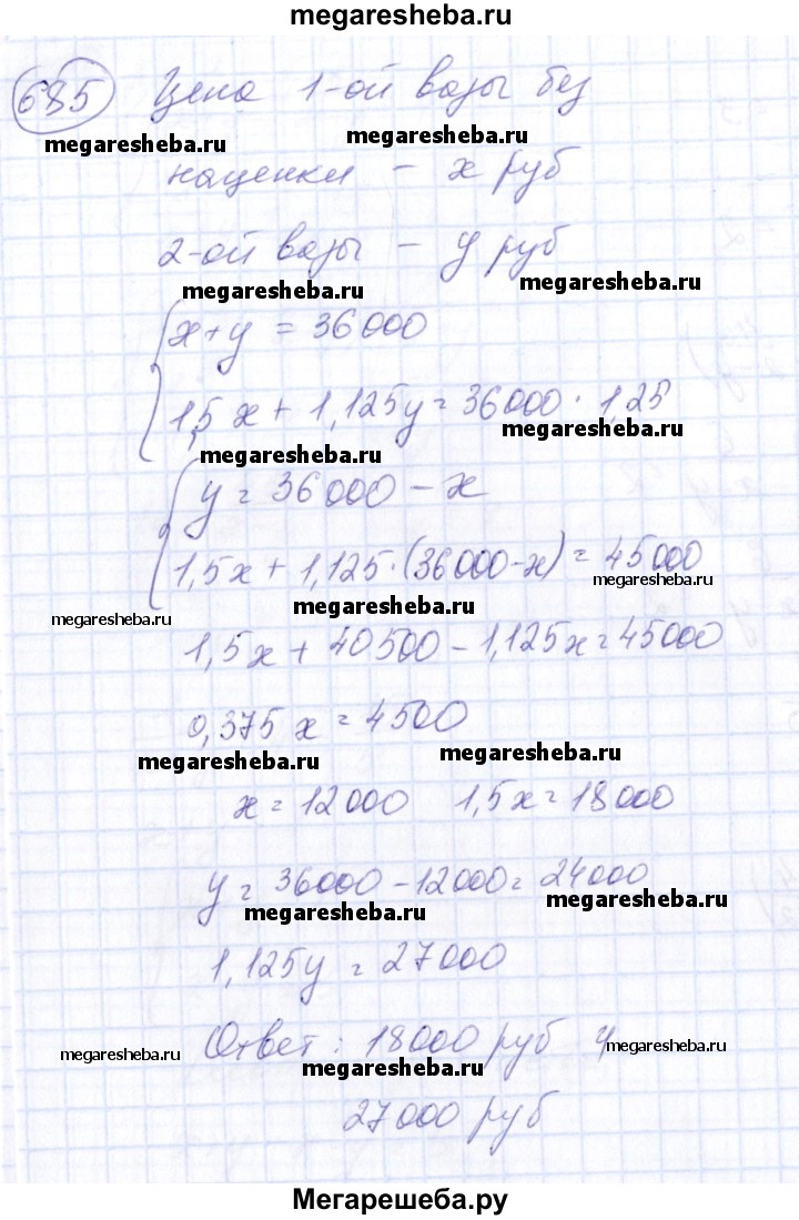 Подробный решебник (ГДЗ) по Алгебре за 7 (седьмой) класс - готовый ответ номер - 685. Авторы учебника: Алимов, Колягин, Сидоров. Издательство: Просвещение 2015.