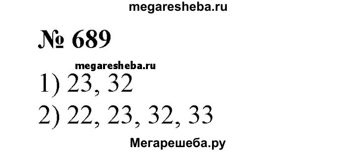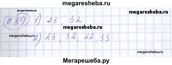 689 С помощью цифр 2 и 3 записать все возможные двузначные числа, в которых цифры: 1) должны быть разными; 2) могут повторяться.