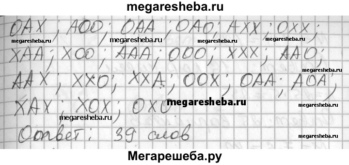 699 У жителей планеты ХО в алфавите три буквы: А, О, X. Слова в языке состоят не более чем из трех букв (буква в слове может повторяться). Какое наибольшее количество слов может быть в словаре жителей этой планеты? Задача 1 Записать всевозможные двузначные числа, используя при этом цифры: 1) 1, 2 и 3; 2) 0, 1, 2 и 3. Подсчитать их количество N. Задача 2 Бросают две игральные кости (на рисунке 28 изображена игральная кость — кубик с отмеченными на его гранях очками, а также развертка этого кубика). Сколько различных пар очков может появиться на верхних гранях костей? Задача 3 Катя и Оля приходят в магазин, где продают в любом количестве плитки шоколада трех видов. Каждая девочка покупает по одной плитке. Сколько существует способов покупки? Задача 4 Имеются три плитки шоколада различных видов. Катя и Оля по очереди выбирают себе по одной плитке. Сколько существует различных способов выбора шоколадок для Кати и Оли? Задача 5 Сколько существует различных двузначных кодов, составленных с помощью букв А, Б, В, Г и Д, если буквы в коде: 1) могут повторяться; 2) должны быть различными?