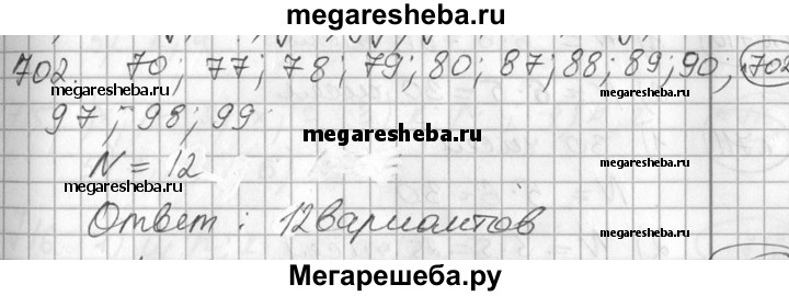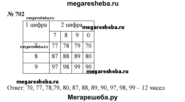 702 Пользуясь таблицей вариантов, перечислить все двузначные числа, в записи которых используются цифры 7, 8, 9, 0, и подсчитать количество этих чисел.