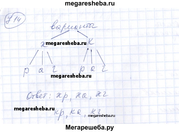 714 Маше на день рождения подарили три букета цветов: из роз (р), астр (а) и гвоздик (г). В доме было две вазы: хрустальная (х) и керамическая (к). Маша пробовала устанавливать каждый букет в каждую вазу. Перечислить все полученные сочетания букета с вазой.