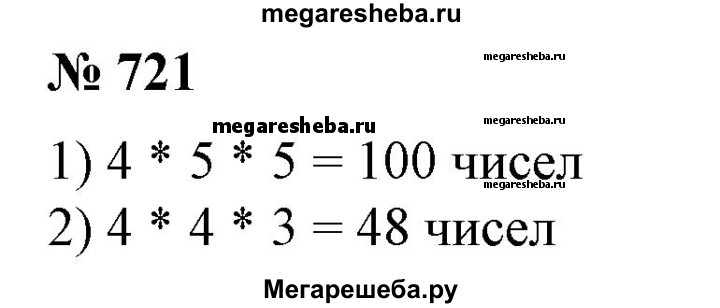 721 Сколько различных трехзначных чисел можно записать с помощью цифр 6, 7, 8, 9, 0 при условии, что цифры в числе: 1) могут повторяться; 2) должны быть различными?