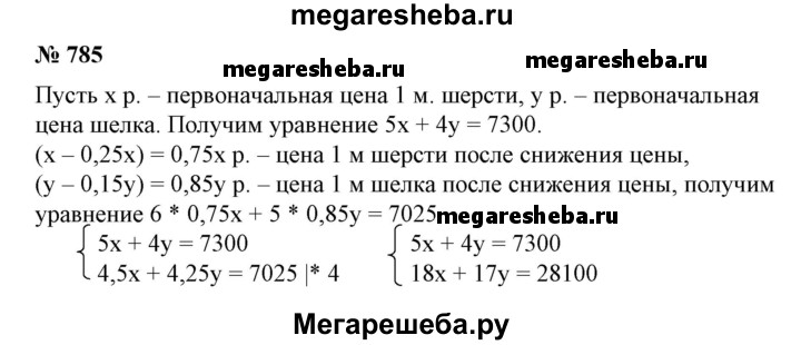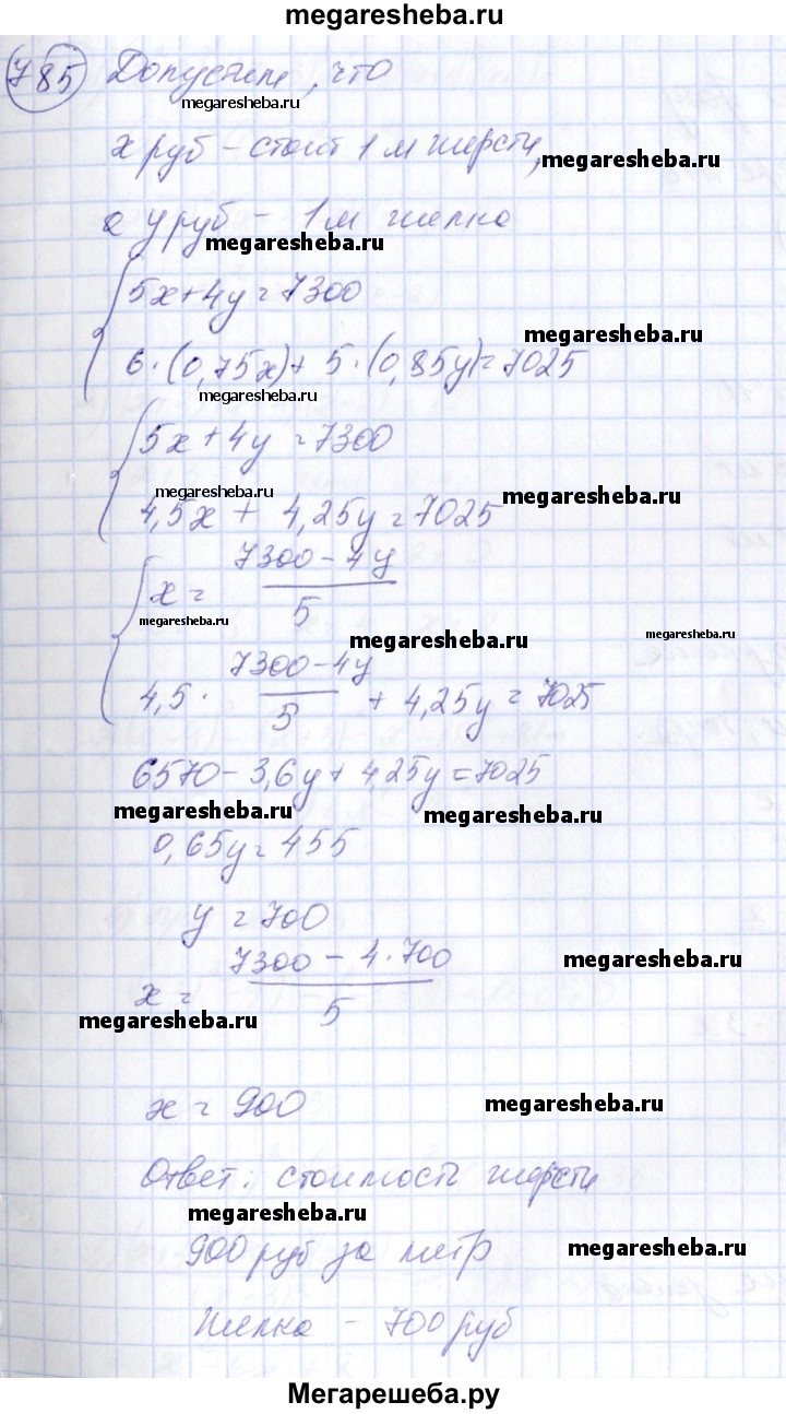 Подробный решебник (ГДЗ) по Алгебре за 7 (седьмой) класс - готовый ответ номер - 785. Авторы учебника: Алимов, Колягин, Сидоров. Издательство: Просвещение 2015.