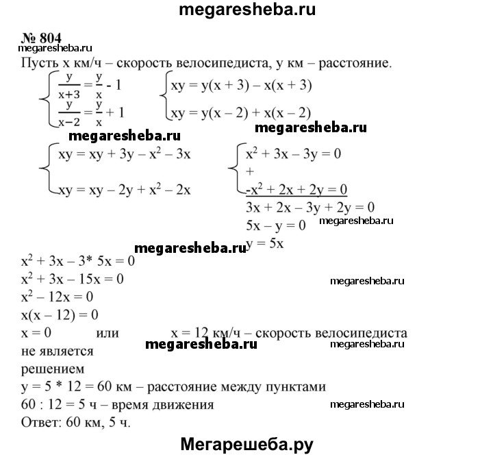 Подробный решебник (ГДЗ) по Алгебре за 7 (седьмой) класс - готовый ответ номер - 804. Авторы учебника: Алимов, Колягин, Сидоров. Издательство: Просвещение 2015.