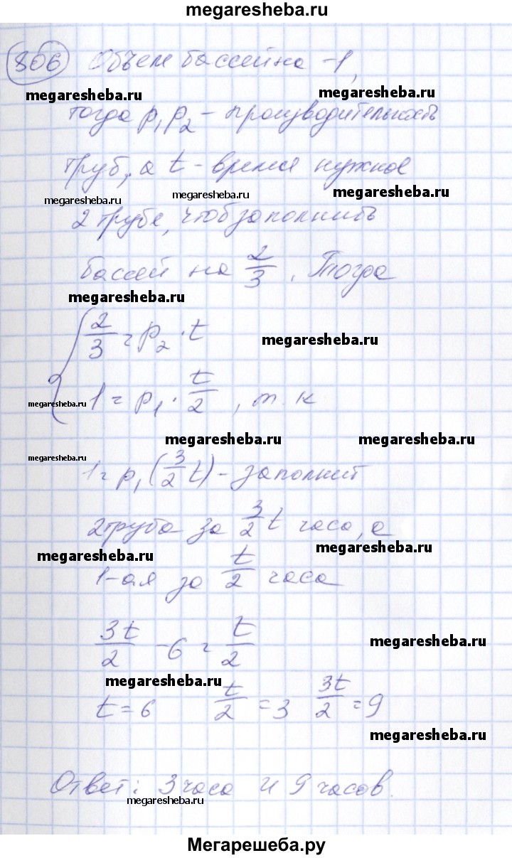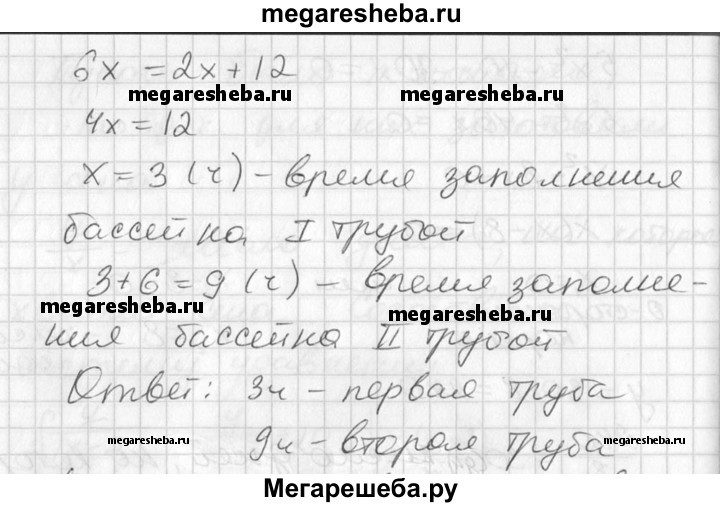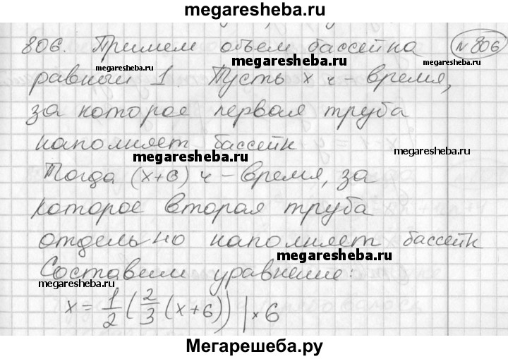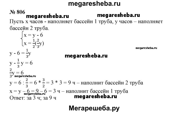 806 Первая труба наполняет бассейн за половину того времени, за которое вторая труба наполняет 2/3 этого бассейна. Вторая труба, работая отдельно, наполняет бассейн на 6 ч дольше, чем одна первая труба. Сколько времени наполняет бассейн каждая труба отдельно?