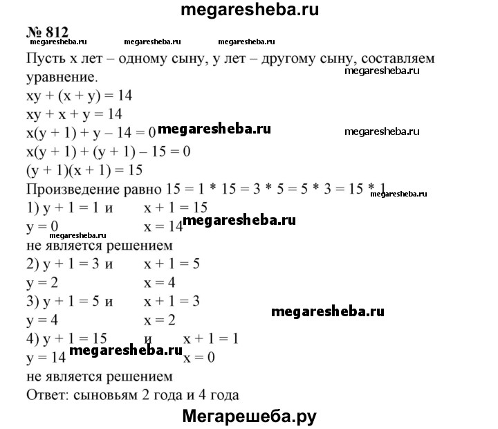 812 У отца спросили, сколько лет его двум сыновьям. Отец ответил, что если к произведению чисел, означающих их года, прибавить сумму этих чисел, то будет 14. Сколько лет сыновьям?