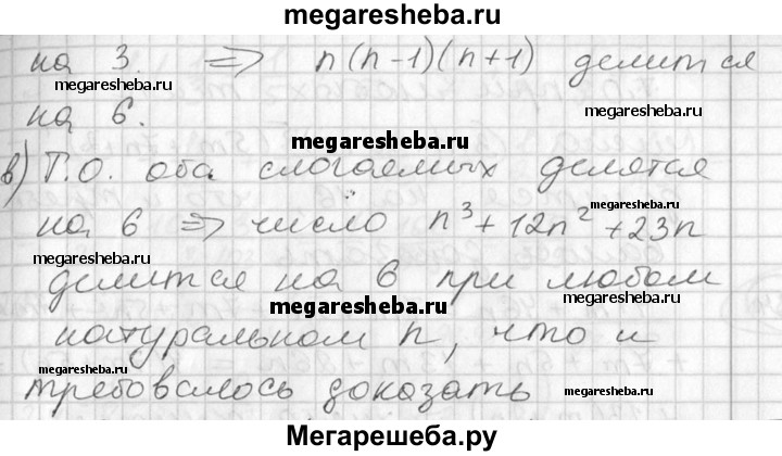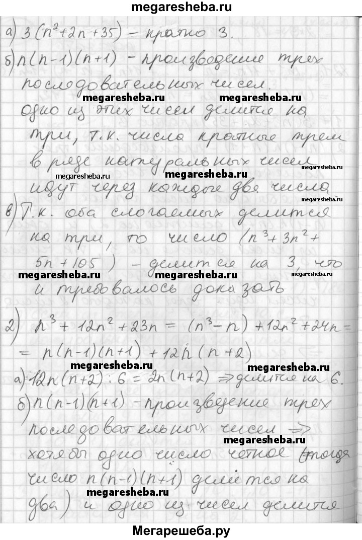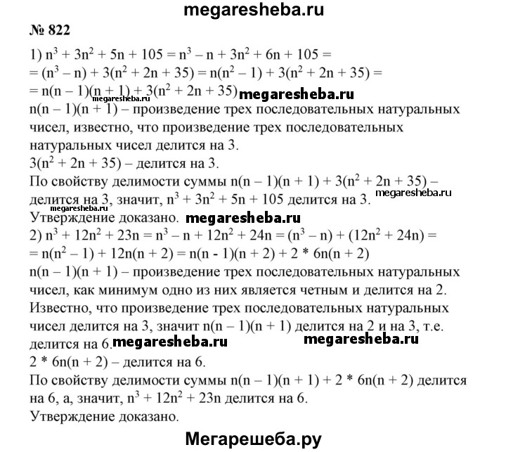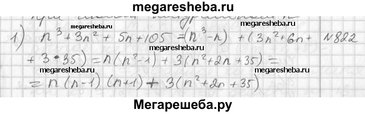 822 Доказать, что при любом натуральном n: 1) значение выражения n3 + 3n2 + 5n +105 делится на 3; 2) значение выражения n3 + 12n2 + 23n делится на 6.